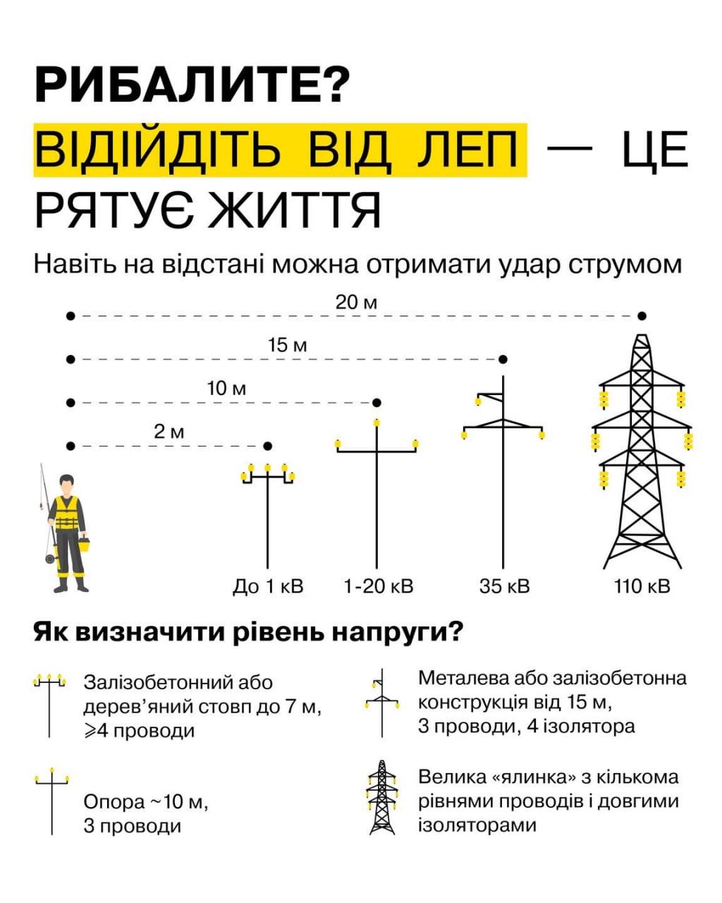ДТЕК Київські регіональні електромережі попереджає про небезпеку рибалки біля ліній електропередачі.
