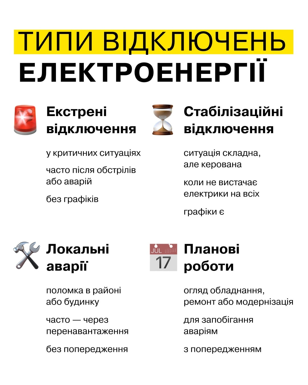 ДТЕК Київські регіональні електромережі інформує: у разі відсутності електроенергії важливо розуміти можливі причини. Це дозволяє орієнтуватися в ситуації та прогнозувати подальші дії щодо відновлення нормального електропостачання. Розуміння цих причин допоможе вам краще підготуватися до можливих перебоїв.