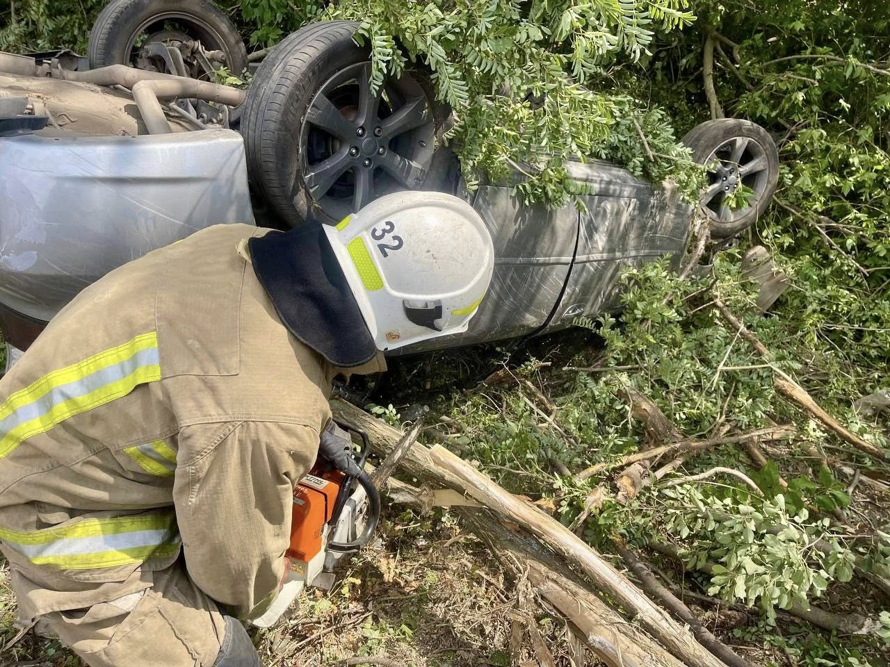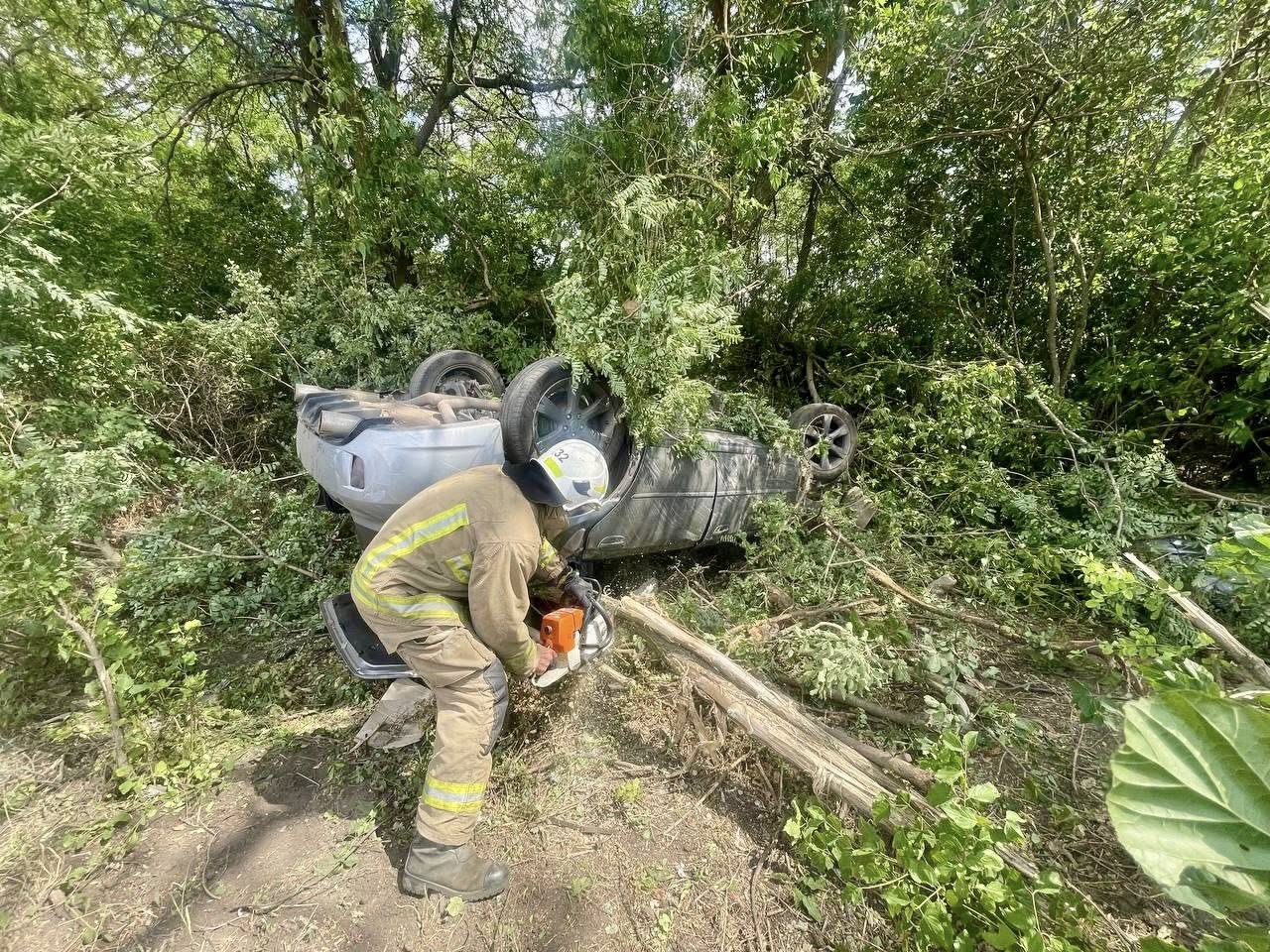 На місце оперативно прибули рятувальники ДСНС. За допомогою буксирувального тросу та аварійно-рятувального інструменту, автомобіль було вилучено з кювету.