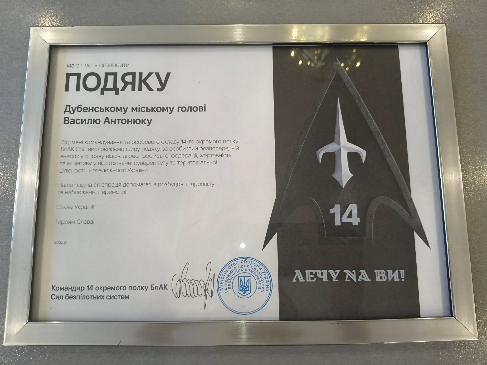 Військові наголошують, що досягнення таких результатів – це не лише заслуга самих воїнів, але й яскравий приклад ефективної підтримки з боку тилу. Громади активно долучаються до допомоги підрозділам. Так, Дубенська громада кілька місяців тому спрямувала на потреби 14-го полку БпАК 1 мільйон гривень. Про цільове використання цих коштів військові детально звітують у спеціально підготовленому відеоролику, доступному за посиланням: https://drive.google.com/file/d/1XMIZ0BqWDNg3TdPLxC2atNiDPXEH47Q3/view?usp=sharing .