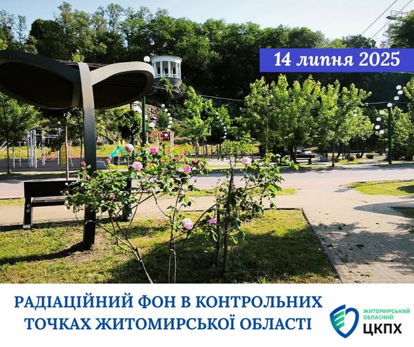 🌬🌫 ДУ «Житомирський обласний центр контролю та профілактики хвороб МОЗ України» повідомляє, що станом на 14.07.2025р. було проведено щоденний дозиметричний контроль міст Житомирської області.