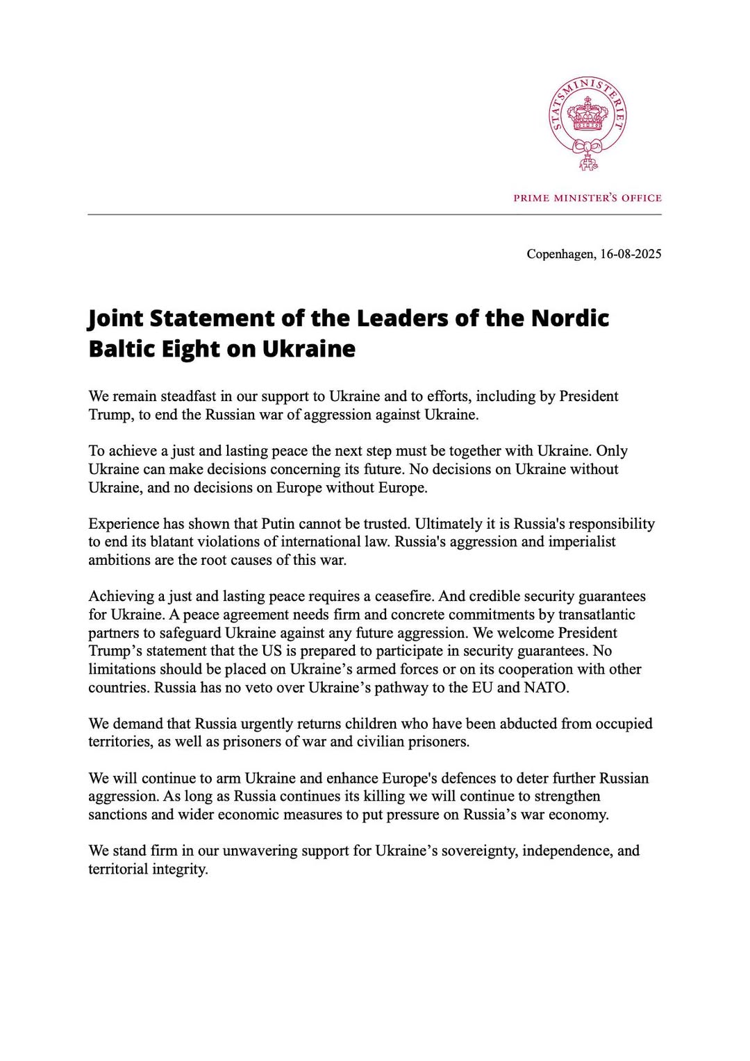 Сьогодні ми активно координували наші дії з міжнародними партнерами, і цей процес триватиме завтра. Особливу увагу приділяємо підготовці до запланованої на понеділок зустрічі з Президентом Трампом. Ми вдячні за надану можливість обговорити ключові питання безпосередньо на рівні лідерів. Це дозволить нам чітко визначити всі деталі та розробити ефективні кроки для досягнення миру. Ми високо цінуємо принципову позицію наших партнерів з Північної Європи та Балтійських країн, а також їхню вагому підтримку. Єдність та спільні зусилля всіх нас є запорукою нашої сили та безпеки. Продовжуємо працювати заради миру, адже припинення агресії та насильства – це найперший крок до відновлення спокійного життя. Кожен внесок у цю спільну мету є цінним, і ми прагнемо забезпечити, щоб наша співпраця приносила реальні результати на шляху до стабільного майбутнього.