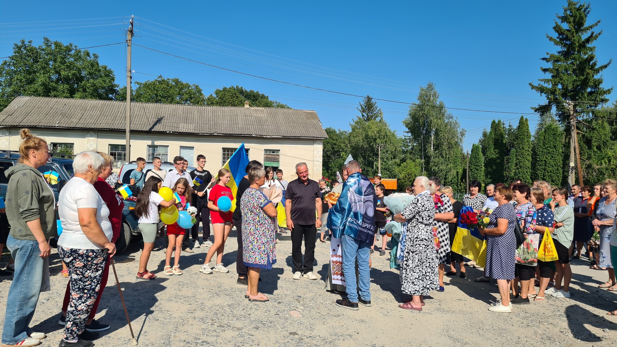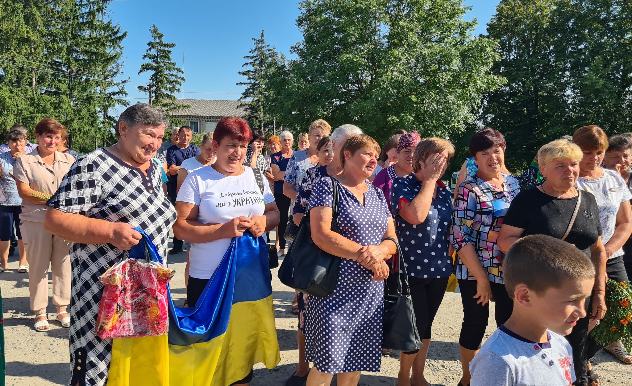 Мама, родина, сусіди, земляки прийшли у центр села, щоб привітати Івана Дмитровича з поверненням додому та обійняти його після довгої нестерпної розлуки.