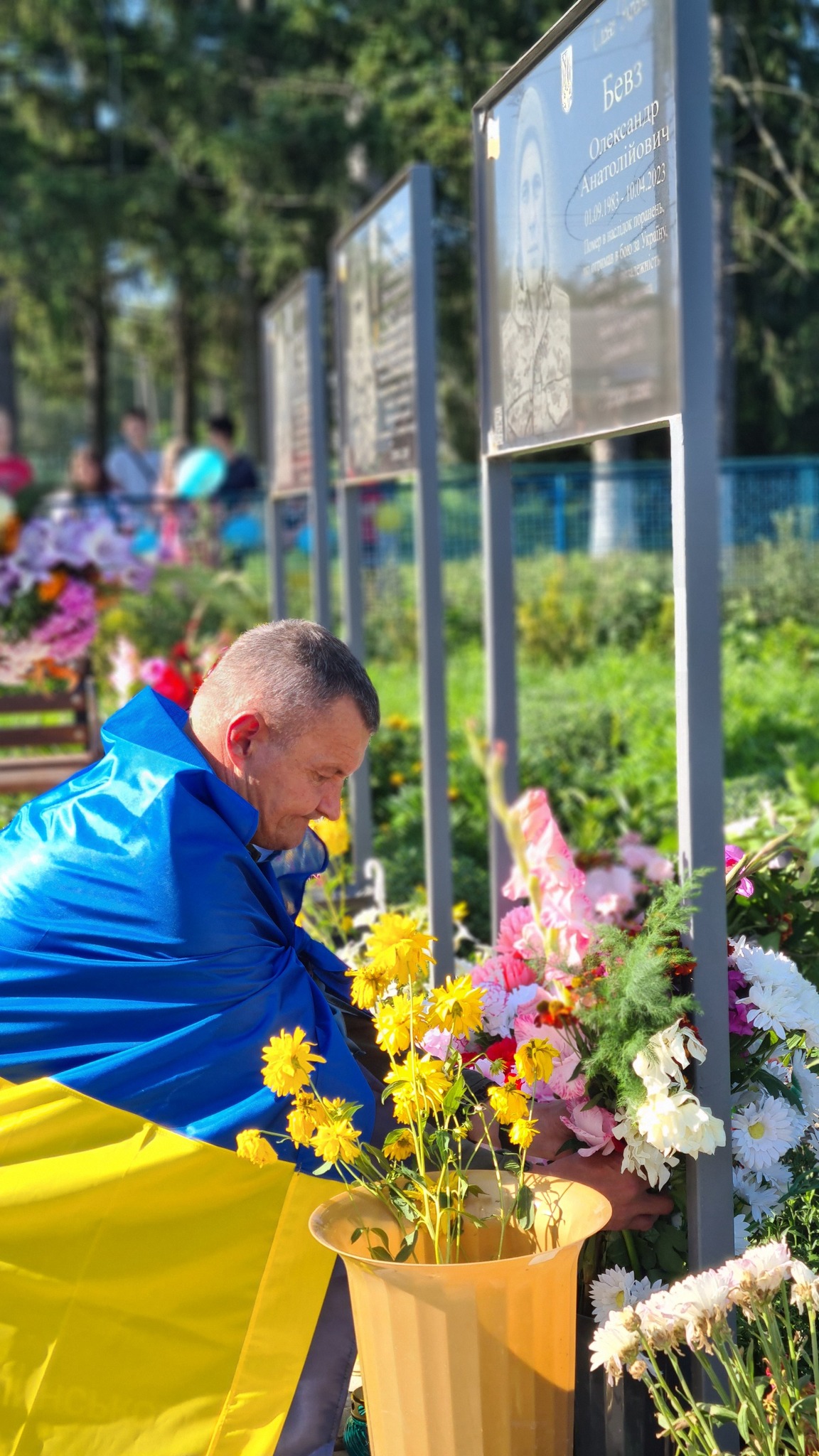 Іван Дмитрович поклав квіти і лампадки до меморіальних дошок своїх односельців, які повернулися додому на щиті – Олександра КОВАЛЬЧУКА, Олександра КОЛІШКА, Олександра БЕВЗА та Валерія НІКІТІНА. Пам’ять Героїв вшанували хвилиною мовчання.