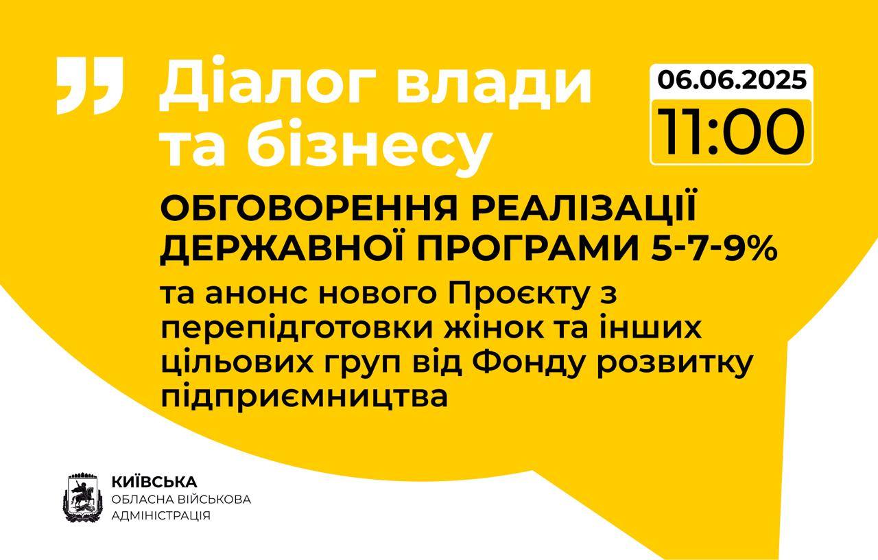 Київська обласна державна адміністрація запрошує представників бізнесу взяти участь у важливій зустрічі в форматі «Діалог влади та бізнесу». Захід відбудеться 6 червня об 11:00 у онлайн-форматі. Ця зустріч – чудова можливість для підприємців Київщини донести свої пропозиції та проблемні питання безпосередньо до керівництва області та представників центральних органів виконавчої влади.
