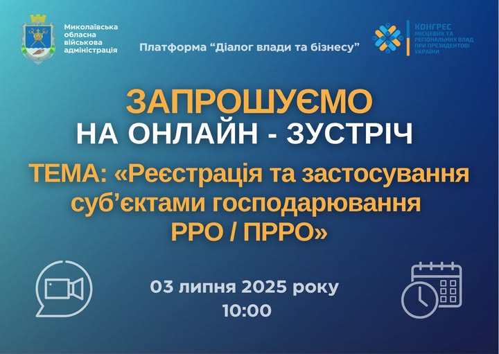 ✅«Діалог влади та бізнесу» триває: запрошуємо представників бізнесу взяти участь в онлайн-зустрічі на тему: «Реєстрація та застосування суб’єктами господарювання РРО / ПРРО»