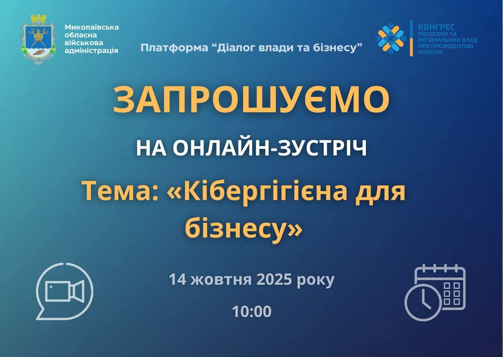 Миколаївська обласна військова адміністрація (ОВА) продовжує активний діалог з представниками бізнесу, запрошуючи їх до участі у стратегічно важливій онлайн-зустрічі. Темою обговорення стане «Кібергігієна для бізнесу» – критично важливий аспект діяльності будь-якого підприємства в сучасних умовах.