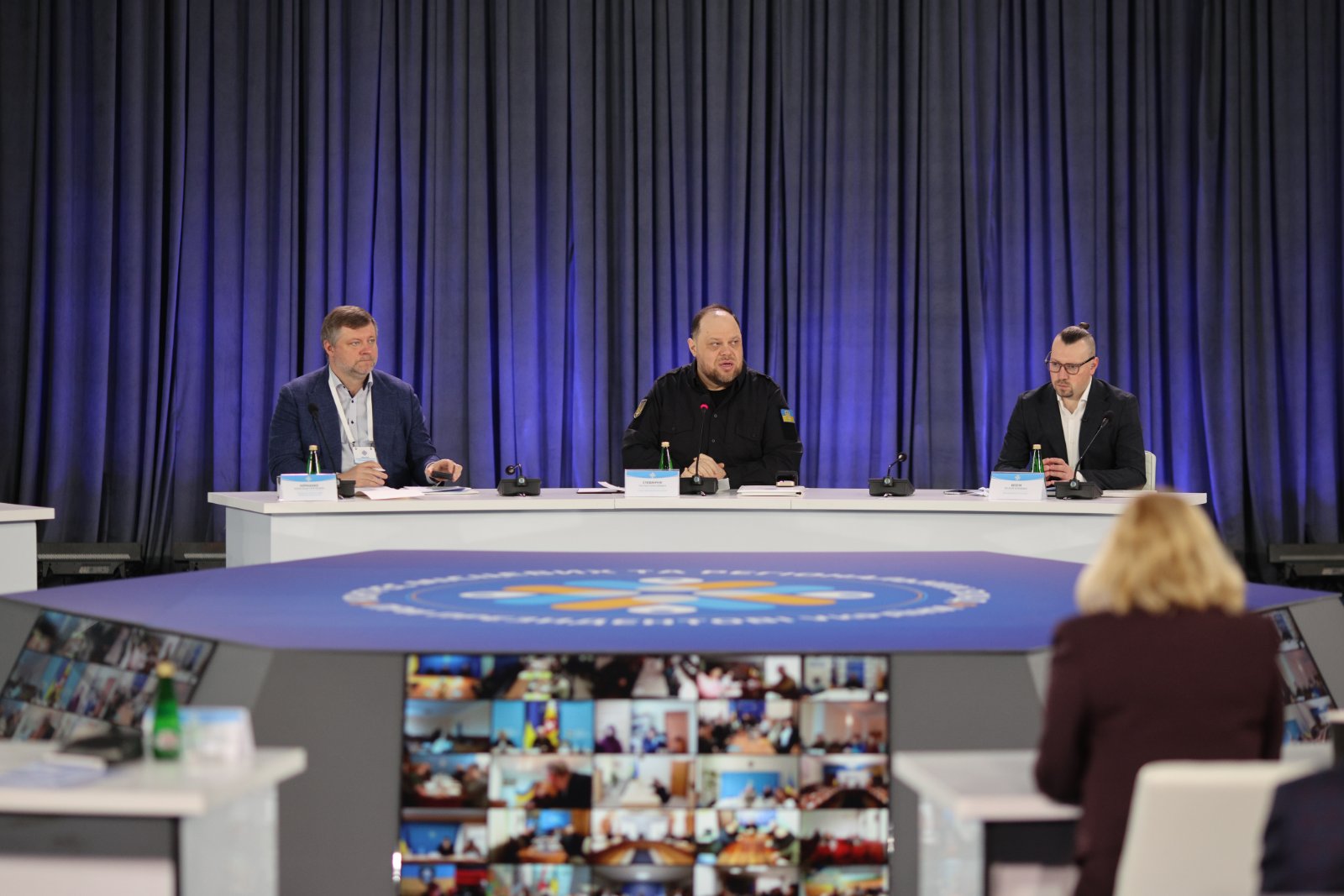 У межах панельної дискусії «Діалог громад із парламентом» до розмови долучилися Голова Верховної Ради України Руслан Стефанчук, перший заступник Голови ВРУ Олександр Корнієнко, голови профільних комітетів – Олена Шуляк, Данило Гетманцев, Олег Бондаренко, Сергій Бабак, а також народні депутати, представники уряду, обласних адміністрацій і громад з усієї країни.