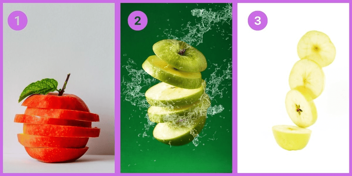 На зображенні ви знайдете три яблука, пронумеровані від 1 до 3. Який ваш вибір? Цей психологічний тест запропонує вам обрати одне з них.
