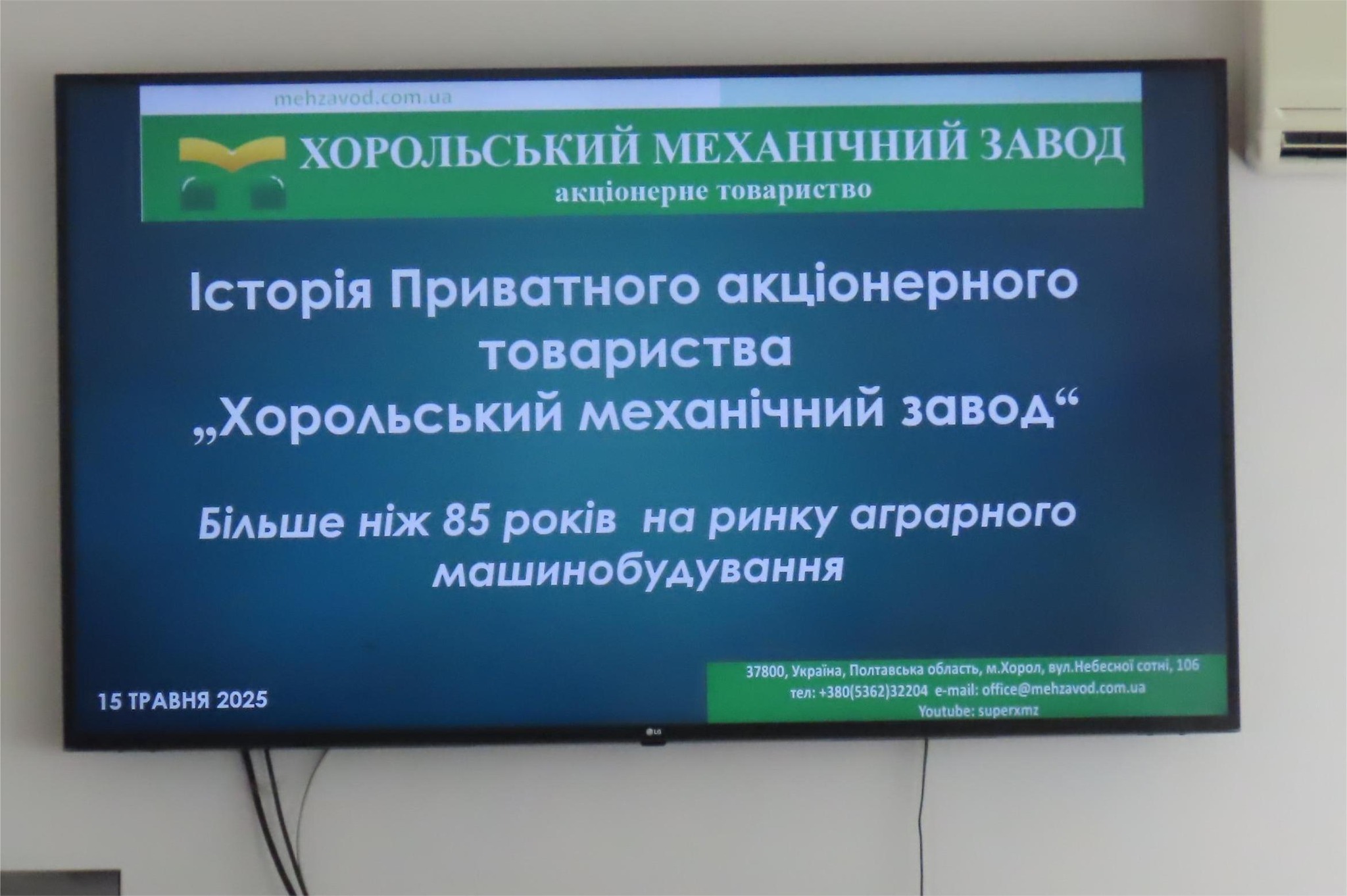 Екскурсія розпочалася із теплої зустрічі Михайлом Івановичем на подвір’ї підприємства, а продовжилася в його кабінеті. Діти мали можливість відчути себе керівниками, посидівши у директорському кріслі та задавши питання Михайлу Івановичу. Згодом, юні відвідувачі перемістилися до конференц-залу, де переглянули відеонарис про історію Хорольського механічного заводу.