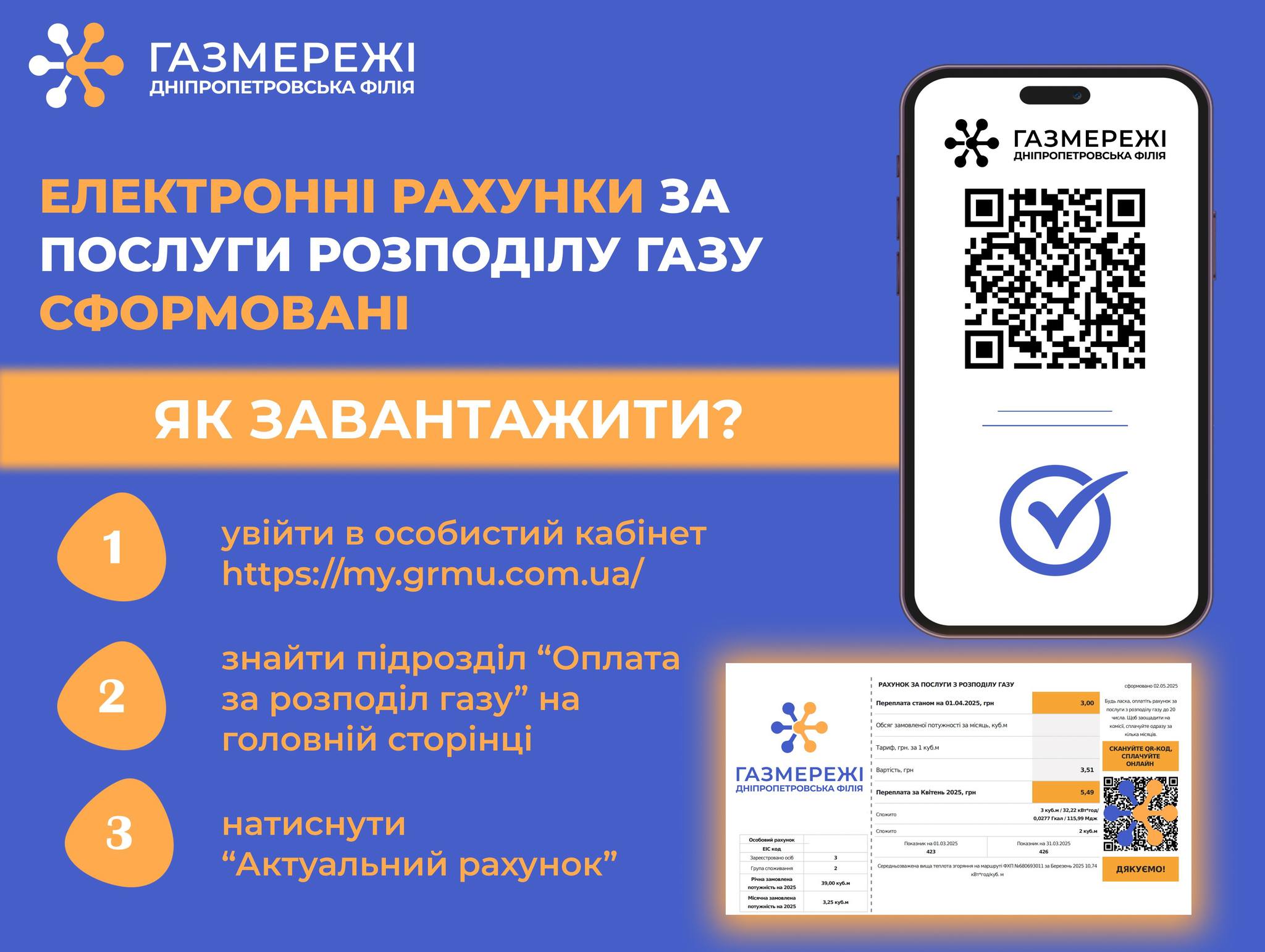 Електронні рахунки за розподіл газу тепер доступні в особистому кабінеті клієнтів Дніпропетровської філії «Газмережі». Дізнайтеся, як швидко та зручно отримати квитанцію за травень, а також здійснити оплату онлайн.