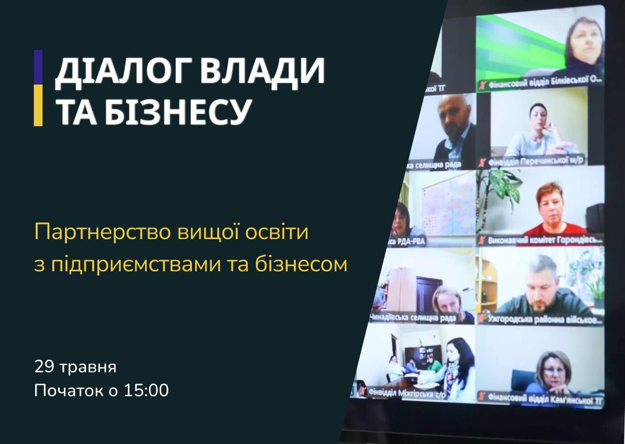 Запрошуємо всіх зацікавлених взяти участь в обговоренні важливих аспектів партнерства освіти та бізнесу на онлайн-зустрічі «Діалог влади та бізнесу», яка відбудеться 29 травня о 15:00.