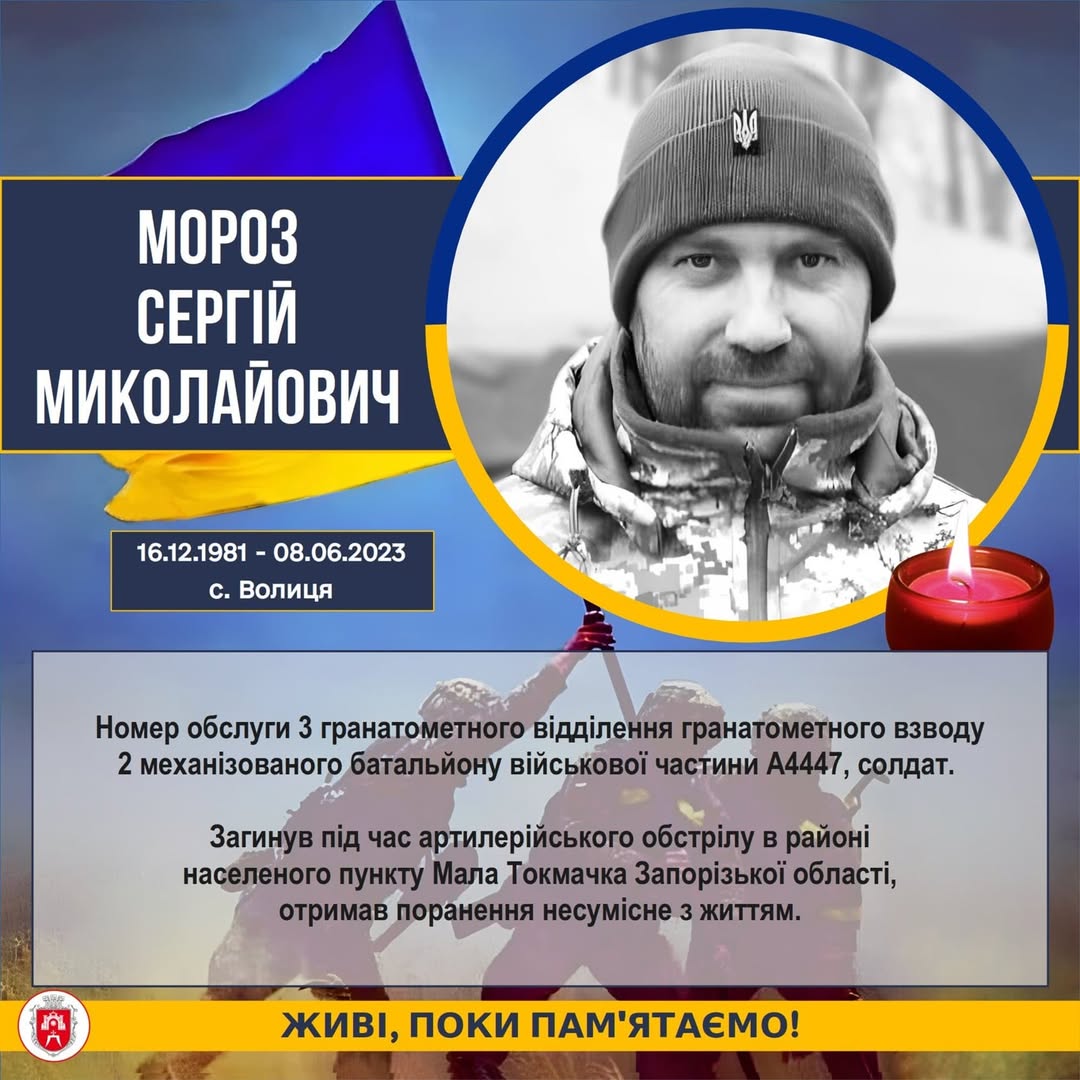 Вічна пам’ять та шана Герою Сергію Морозу! Його подвиг ніколи не буде забутий. Ми завжди будемо пам’ятати його як відданого сина України, люблячого батька та чоловіка, щирого друга та просто хорошу людину.