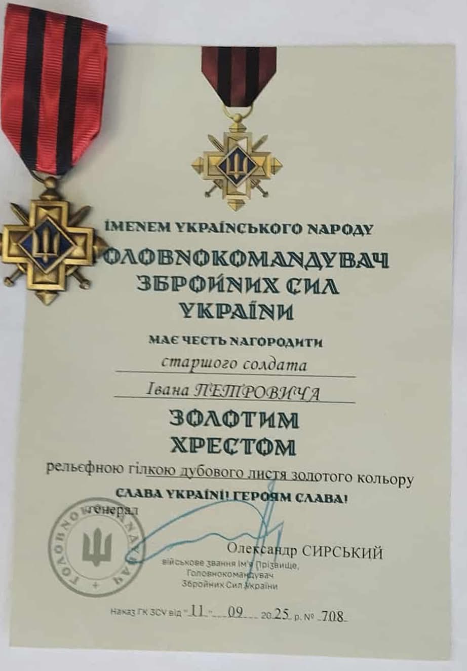 Іван Петрович – справжній герой, чия відзнака «Золотий хрест» є заслуженим визнанням його подвигу.