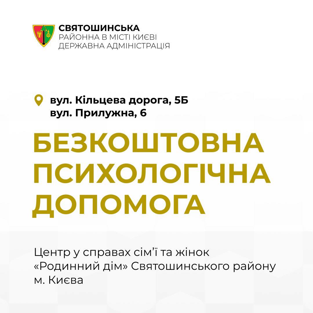 Жителі Святошинського району можуть отримати безкоштовну психологічну допомогу в…