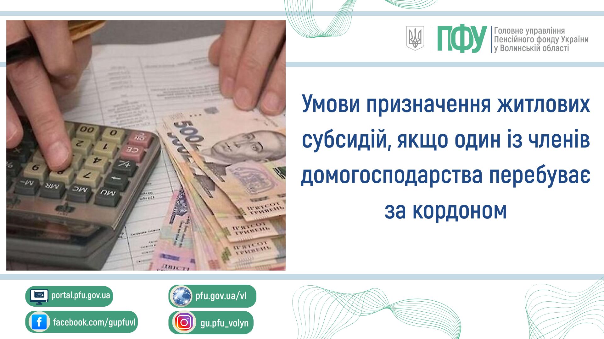 ‼️ ВАЖЛИВО! Одержувач житлової субсидії зобов’язаний протягом 30 днів повідомити Пенсійний фонд України про будь-які обставини, що впливають на призначення житлової субсидії. Це стосується і факту перебування за кордоном будь-кого з членів домогосподарства або члена сім’ї особи зі складу домогосподарства сукупно понад 60 днів у періоді, на який призначено субсидію.