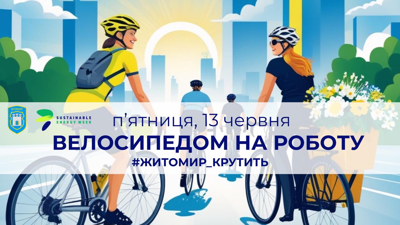 Флешмоб «Велосипедом на роботу» є частиною комплексних заходів у межах Європейського тижня сталої енергії у Житомирській міській територіальній громаді, спрямованих на підтримку екологічної свідомості, збереження клімату та впровадження сучасних підходів до міського розвитку. Найактивніші та найкреативніші учасники будуть відзначені на офіційних інформаційних ресурсах Житомирської міської ради. Не пропустіть свій шанс стати прикладом для інших!