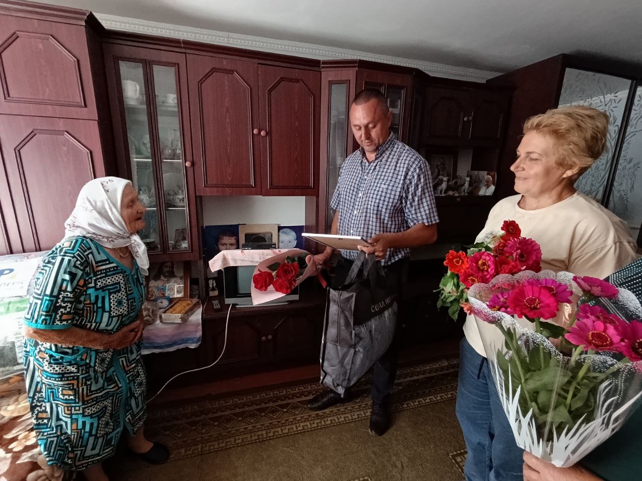До цієї поважної дати завітали представники місцевої влади — селищний голова та староста села, які особисто привітали Нарцезину Михайлівну, подякувавши за її життєвий шлях та побажали ще довгих років у мирі, любові та злагоді.