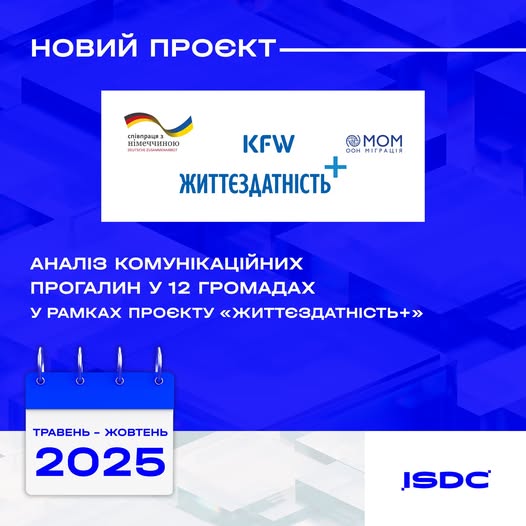 Цю роботу ISDC проводить у межах проєкту «Життєздатність+: Економічна інтеграція внутрішньо переміщених осіб та постраждалих від війни». Проєкт фінансується Німецьким банком розвитку KfW від імені Bundesministerium für wirtschaftliche Zusammenarbeit und Entwicklung (BMZ) та впроваджується IOM Ukraine.