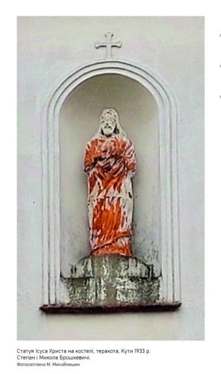Статуя, створена у 1933 році синами відомого майстра Івана Брошкевича, Степаном та Миколою, в їхній родинній «Керамічній майстерні», відзначає майже столітній ювілей свого встановлення. Свого часу, ця керамічна скульптура в людський зріст була справжнім витвором мистецтва, але з роками втратила свою первозданність, будучи зафарбованою білою фарбою. На щастя, ця історія отримала продовження завдяки ініціативі та самовідданій праці професора Львівської національної академії мистецтв, скульптора Івана Васильовича Микитюка. Пан Микитюк, який неодноразово відвідував Кути, взяв на себе відповідальність за відновлення історичної цінності скульптури, демонструючи глибоку повагу до керамічного мистецтва та місцевої історії.
