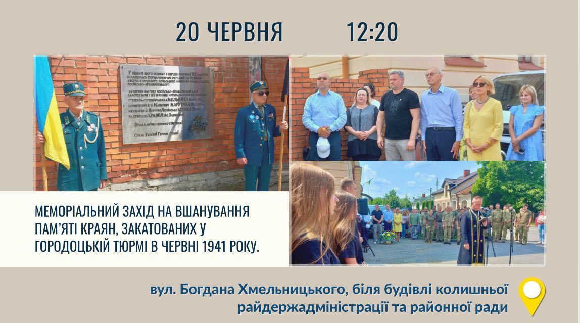 📆Завтра, 20 червня, запрошуємо свідому громадськість долучитися до пам’ятних заходів у Городку: