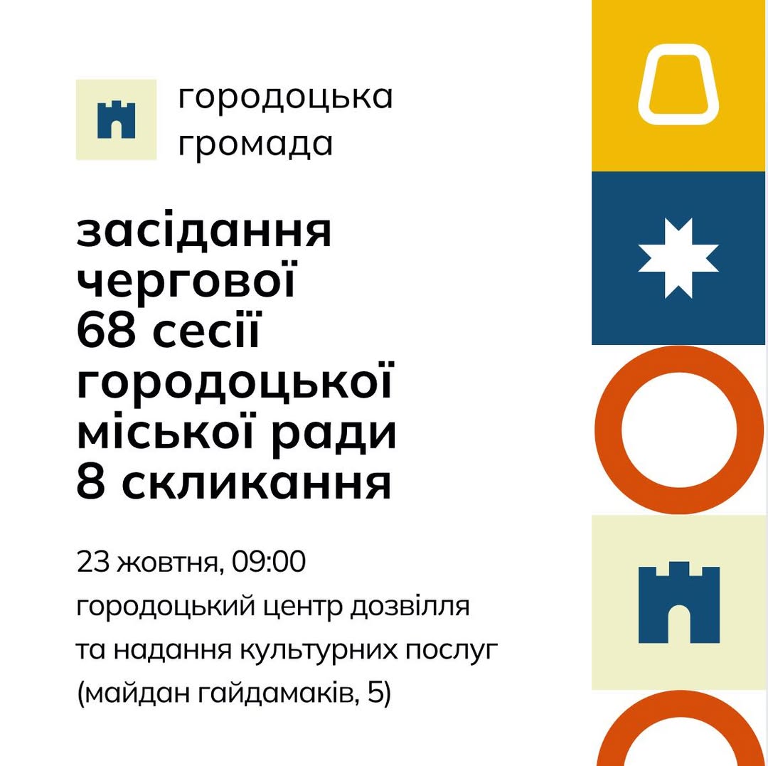 ℹ️ **68-е засідання Городоцької міської ради відбудеться вже завтра, 23 жовтня.**