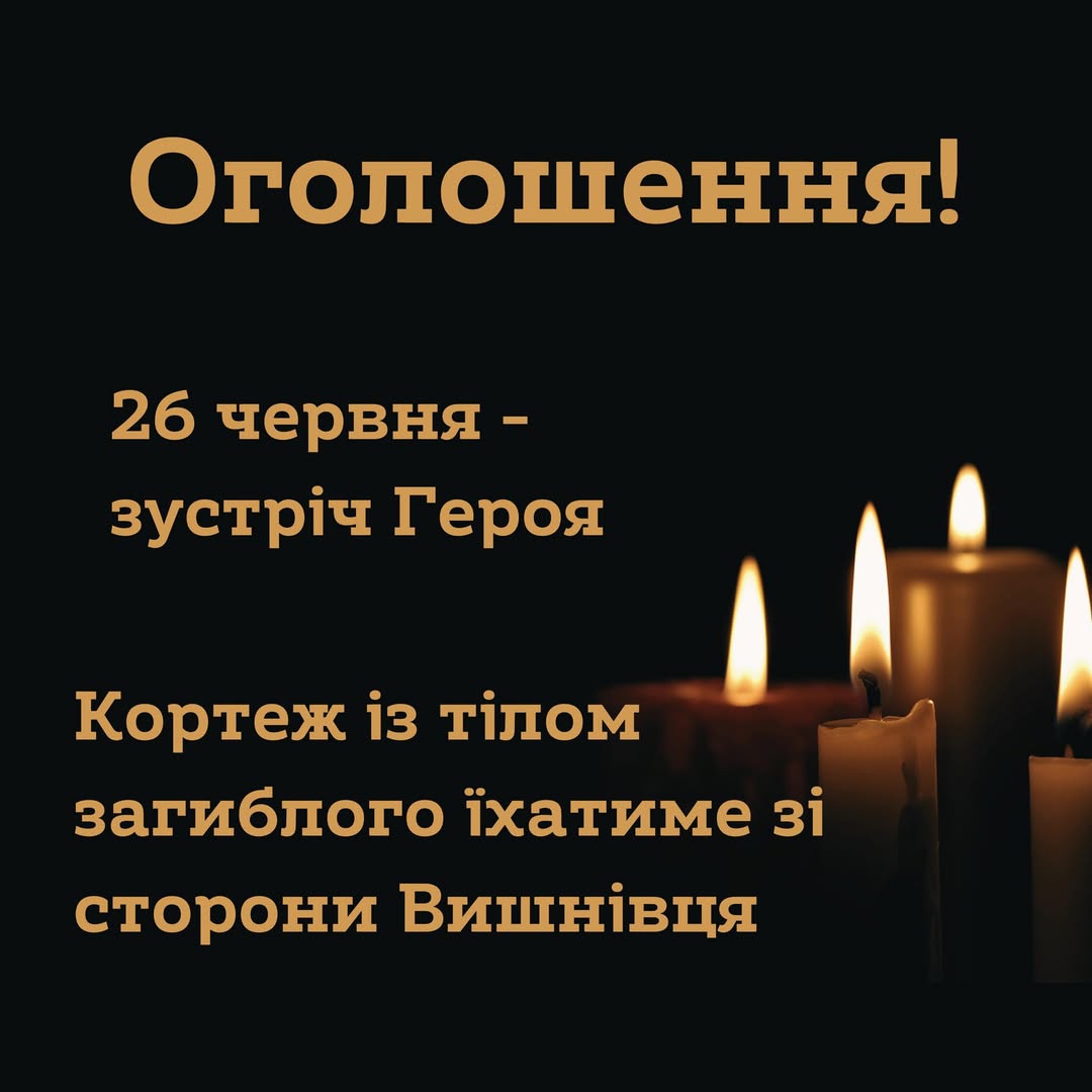 В Борсуках біля каплички відбудеться зустріч загиблого близько 12-13 год. Кортеж із тілом захисника їхатиме через Вишнівець. Про час детальніше повідомимо.