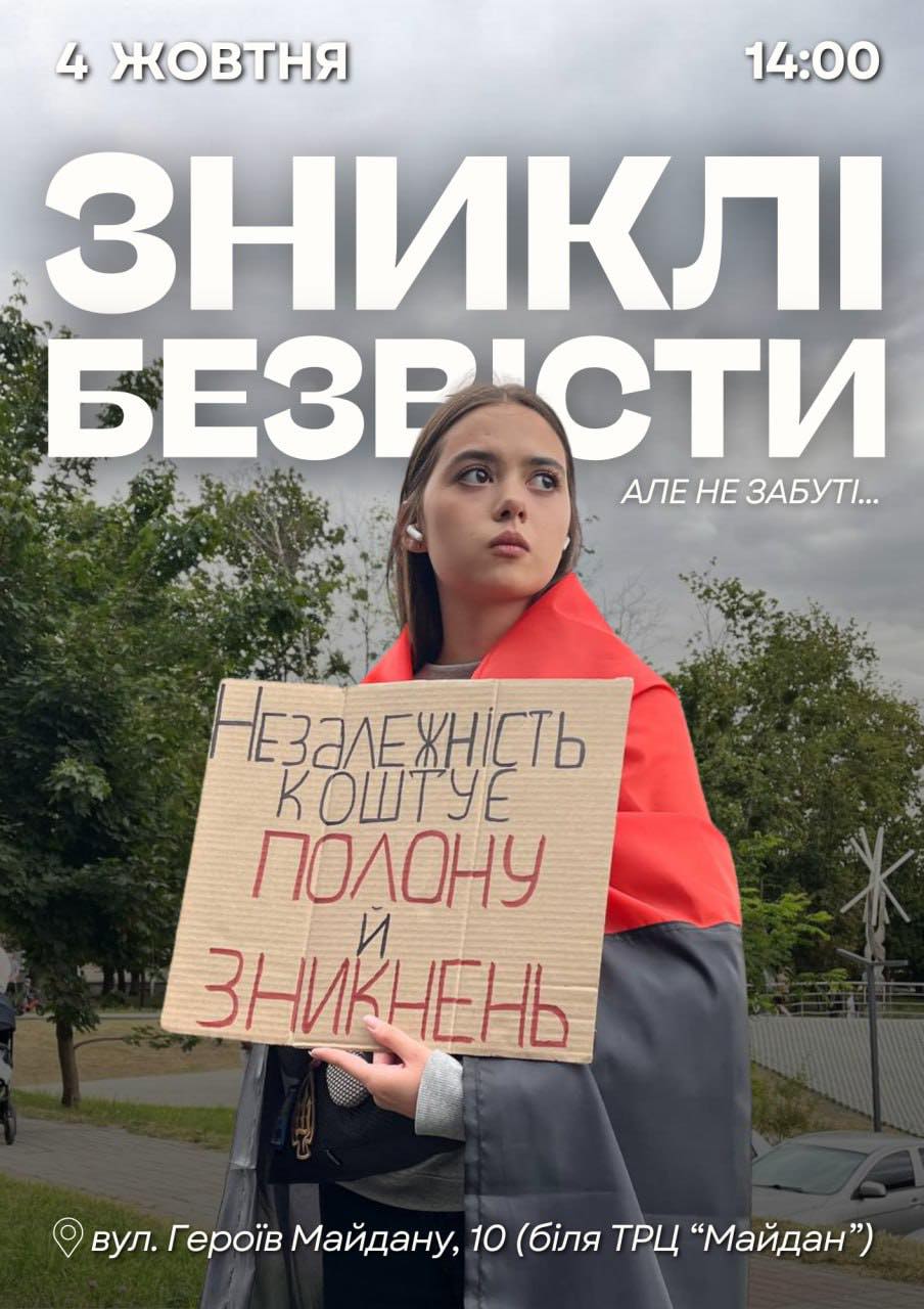 Завтра, 4 жовтня, о 14:00 громадська ініціатива «Жити чекаючи», що об’єднує родини безвісти зниклих Захисників, запрошує долучитися до мовчазної акції підтримки біля ТЦ «Майдан». Ця ініціатива має на меті привернути увагу суспільства до долі наших Героїв, які зникли безвісти під час виконання бойових завдань, та тих, хто перебуває у полоні. Важливо пам’ятати про кожного, хто не повернувся з війни, і про тих, чий зв’язок з рідними був втрачений місяці чи навіть роки тому.