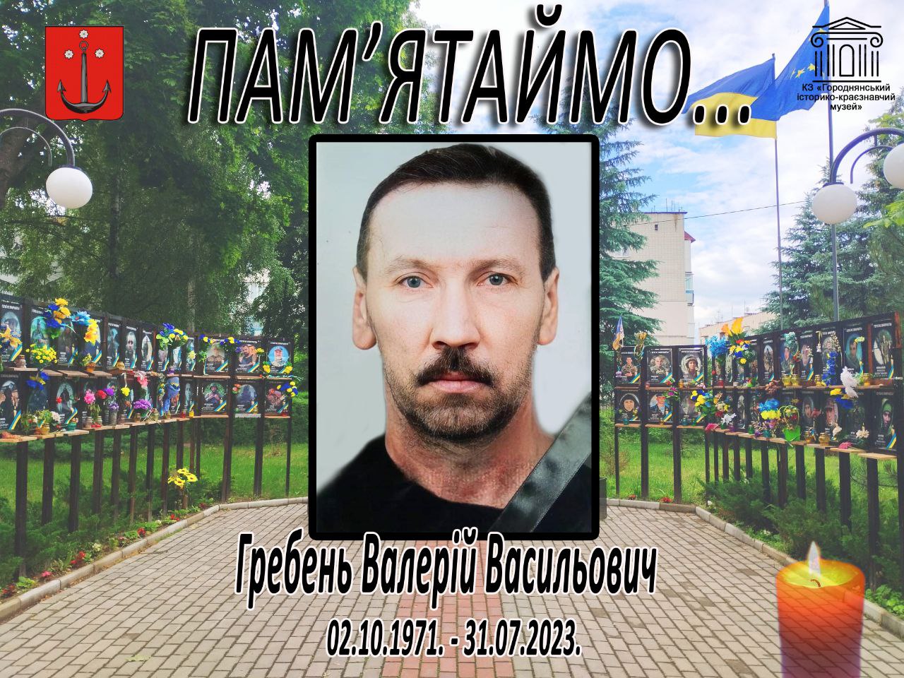 🕘 Щорічно, о 9 годині ранку, ми вшановуємо пам’ять українців, які віддали своє життя за свободу та незалежність України 🇺🇦. Сьогодні виповнюється дві річниці з дня трагічної загибелі нашого мужнього захисника, Гребеня Валерія Васильовича.