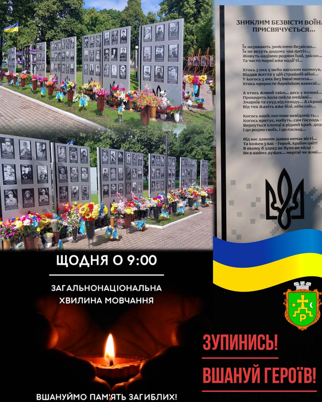 🕯️ Щоранку о 09:00 вся Україна зупиняється на хвилину, щоб вшанувати пам’ять Героїв, які віддали своє життя за нашу свободу та незалежність. Ця загальнонаціональна хвилина мовчання є спільним обов’язком кожного громадянина, виявом глибокої поваги та вдячності полеглим воїнам та мирним жителям, чиє життя безжально забрала війна.