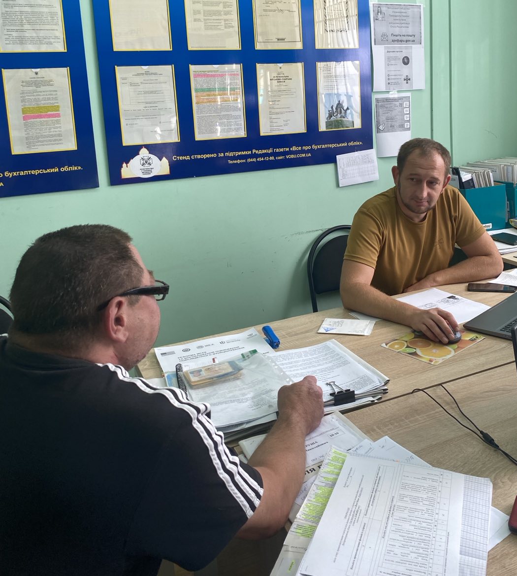 🔸Учасника бойових дій консультує фахівець із супроводу ветеранів війни та демобілізованих осіб Олександр Скуба