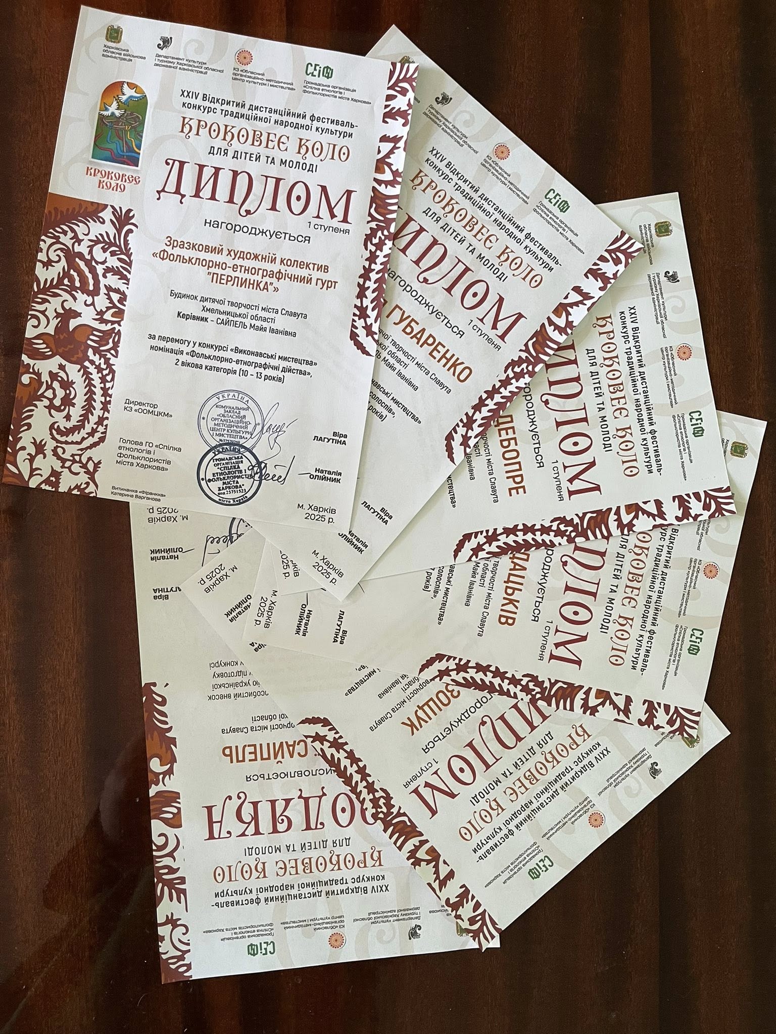 Вітаємо з успішним завершенням навчального року! Раді поділитися чудовими результатами дистанційного Всеукраїнського фестивалю-конкурсу традиційної народної культури «Кроковеє коло», організованого Обласним організаційно-методичним центром культури і мистецтва м. Харків. Наші талановиті учасники здобули ПЕРШІ МІСЦЯ в усіх номінаціях!