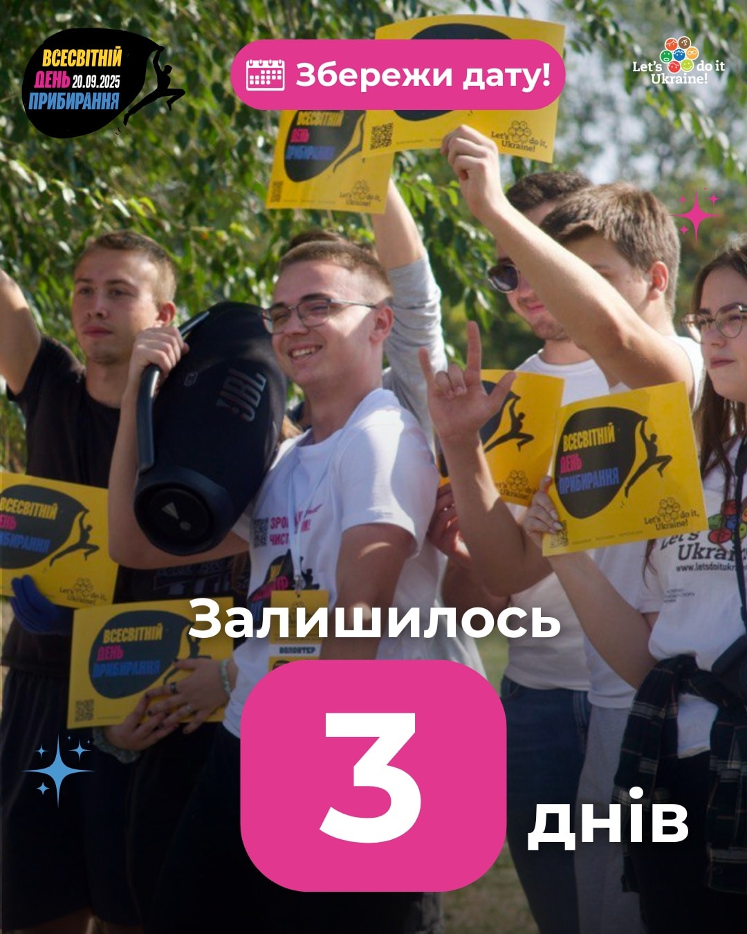 🌏 Залишилося всього 3 дні до наймасштабнішої екологічної події року – Всесвітнього дня прибирання 2025! 🌏