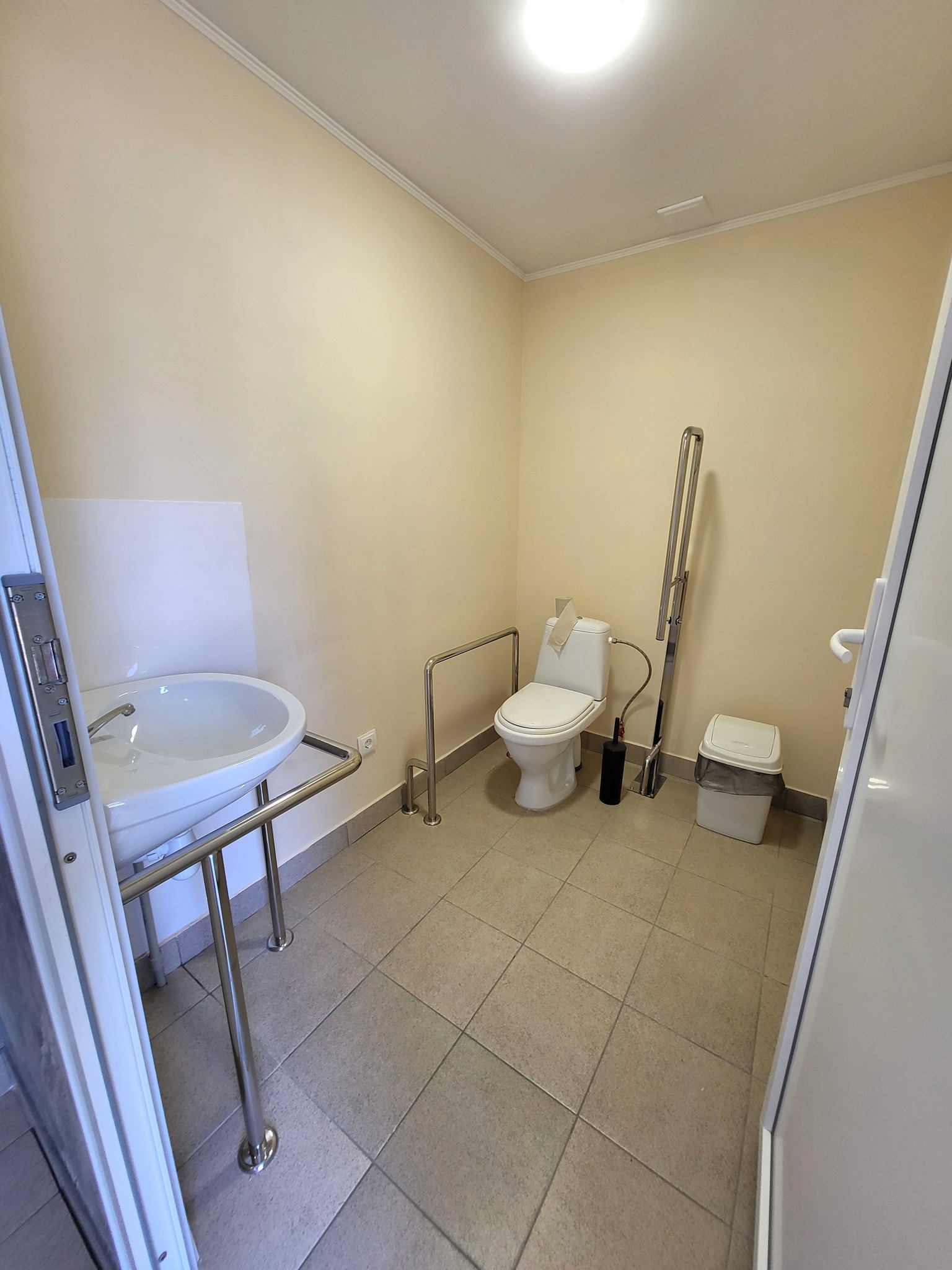 ♿👶 Одна з кабінок спеціально призначена для людей з особливими потребами та батьків із маленькими дітьми. Там незабаром з’явиться пеленальний столик, де мами зможуть зручно переодягати малюків. Також для зручності ззовні облаштовано пандус, що забезпечує повну доступність для всіх груп населення.