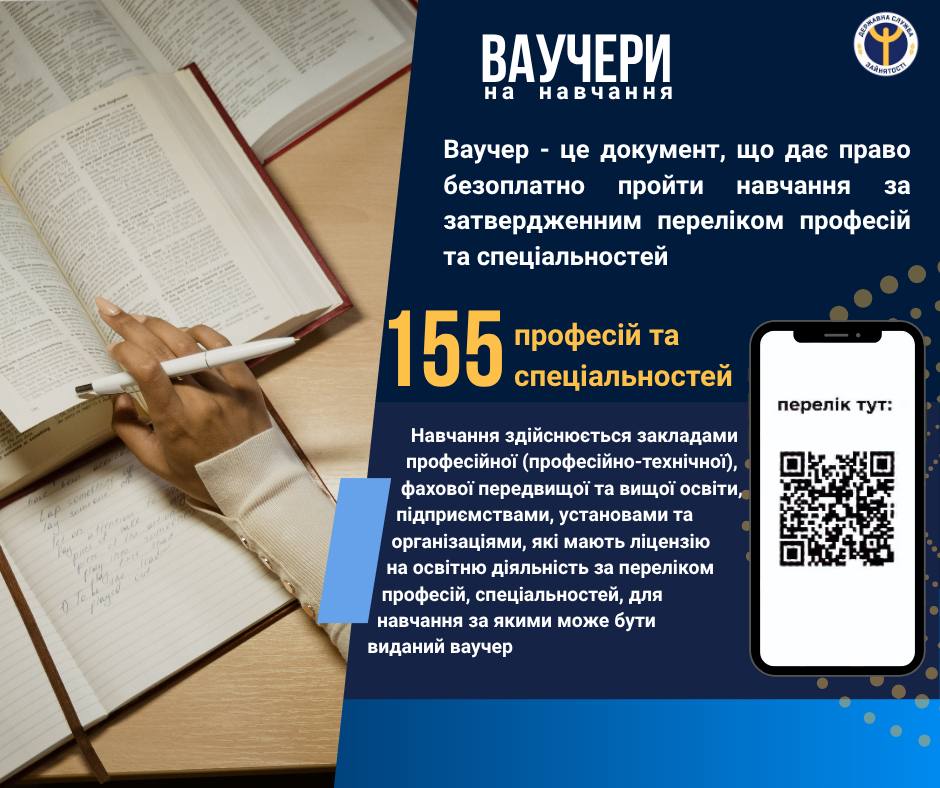 Перелік професій і спеціальностей, за якими можна отримати ваучер, значно розширився і для навчання наразі доступні 155 професій та спеціальностей, які затребувані на ринку праці. Зокрема у сферах ІТ-технологій, будівництва, транспорту, освіти, медицини, сільського господарства, соціального обслуговування тощо.