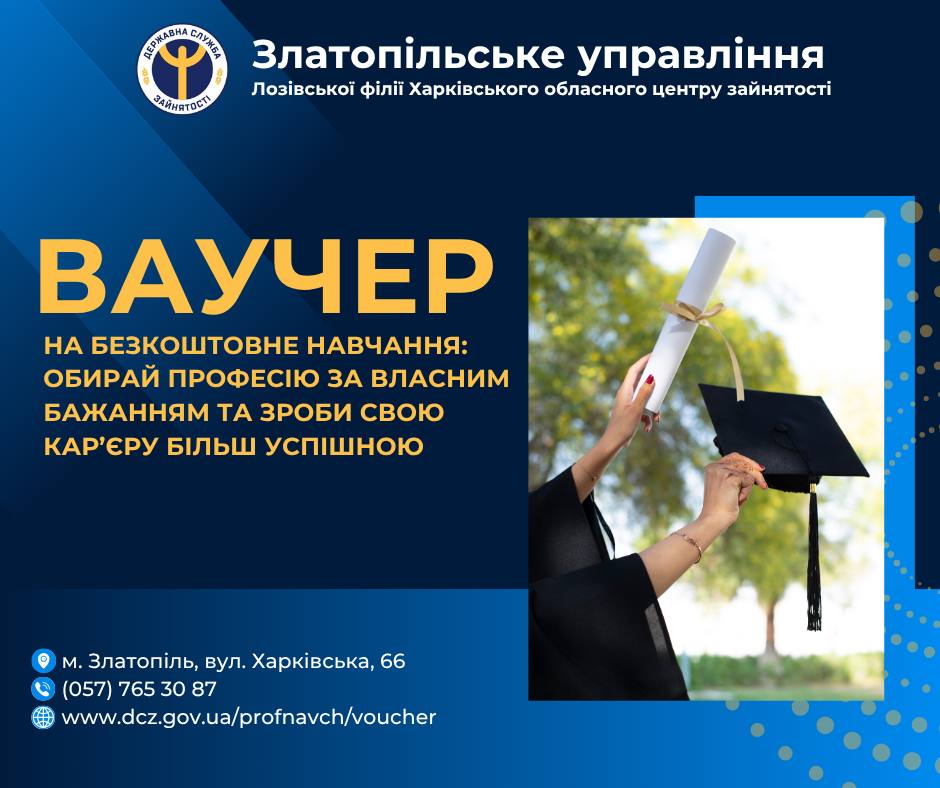 Для отримання ваучера вам необхідно звернутися до Златопільського управління Лозівської філії Харківського обласного центру зайнятості з відповідним пакетом документів за адресою м.Златопіль, вул. Харківська, 66. Фахівці центру проконсультують вас щодо всіх деталей програми.
