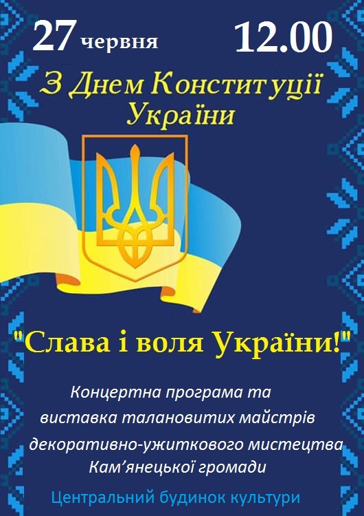 Запрошуємо вас завітати на благодійний захід, з нагоди Дня Конституції України, в рамках культурно-мистецької благодійної акції «Мистецтво проти війни»🇺🇦.