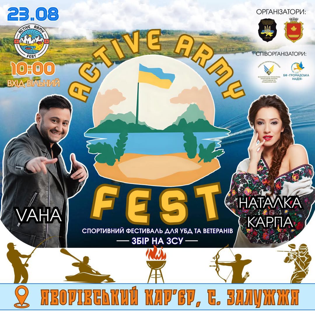 Запрошуємо всіх на грандіозний спортивний фестиваль Active Army Fest 2025! Це унікальна подія, що об’єднує учасників бойових дій та ветеранів України для активного відпочинку та змагань. Фестиваль відбудеться 23 серпня, початок о 10:00, у мальовничому селі Залужжя, на території Яворівського кар’єру.