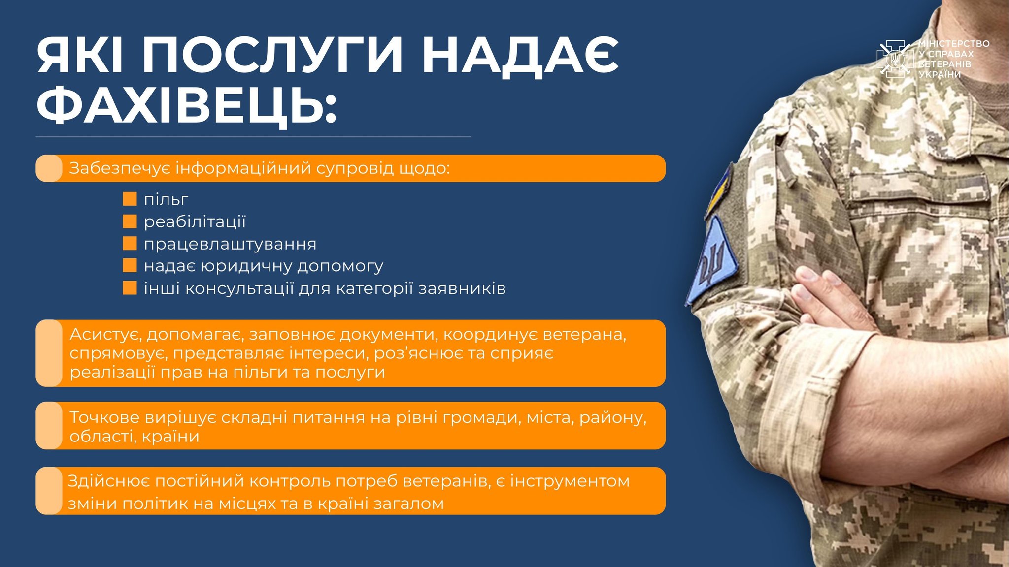 - Отримати вичерпну інформацію про всі доступні пільги, соціальні гарантії, можливості медичного обслуговування, реабілітаційні програми та інші важливі послуги.
