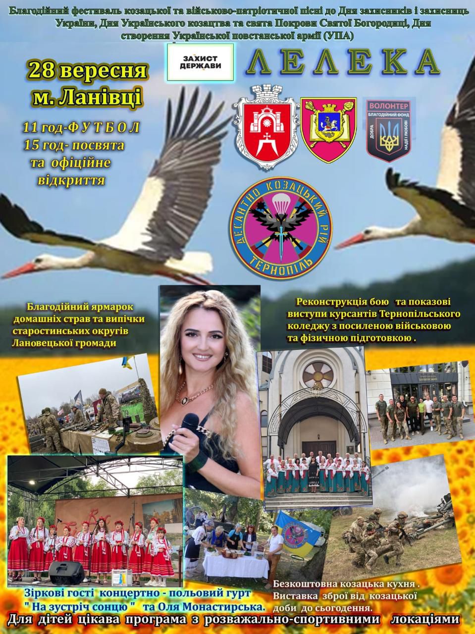 Запрошуємо всіх шанувальників української пісні, патріотичної музики та незламної козацької культури на яскравий та душевний фестиваль козацької та військово-патріотичної пісні «Лелека»! Це унікальна нагода зануритись у атмосферу національного колориту та почути автентичні українські мотиви.