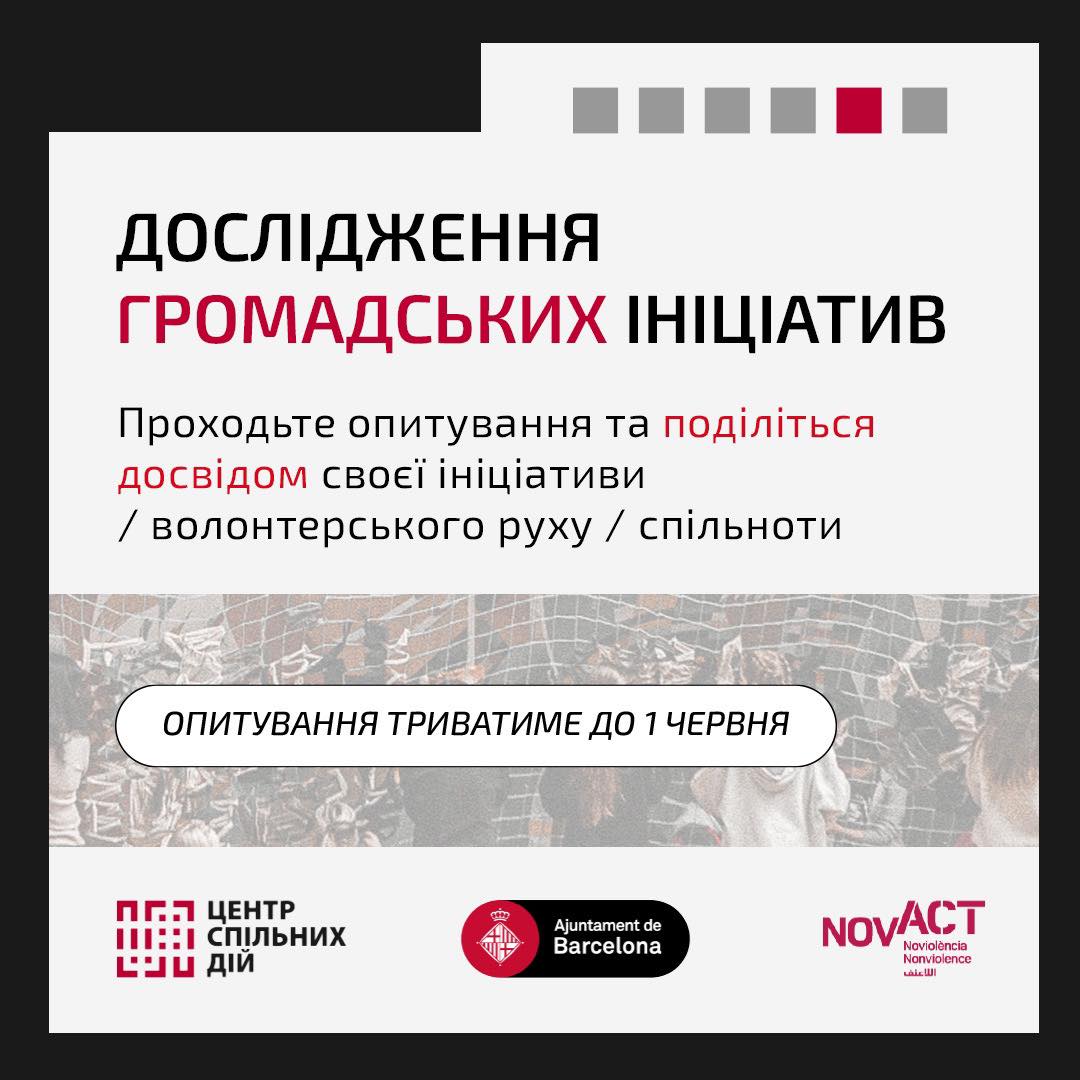 Центр спільних дій у співпраці з міжнародною організацією Novact та за підтримки міста Барселони проводить дослідження громадських ініціатив, щоб зрозуміти, як вони функціонують в умовах повномасштабної війни. Ми хочемо дізнатися, з якими викликами стикаються громадські ініціативи, як вони взаємодіють з органами влади та між собою, і що їм необхідно для забезпечення сталого розвитку.
