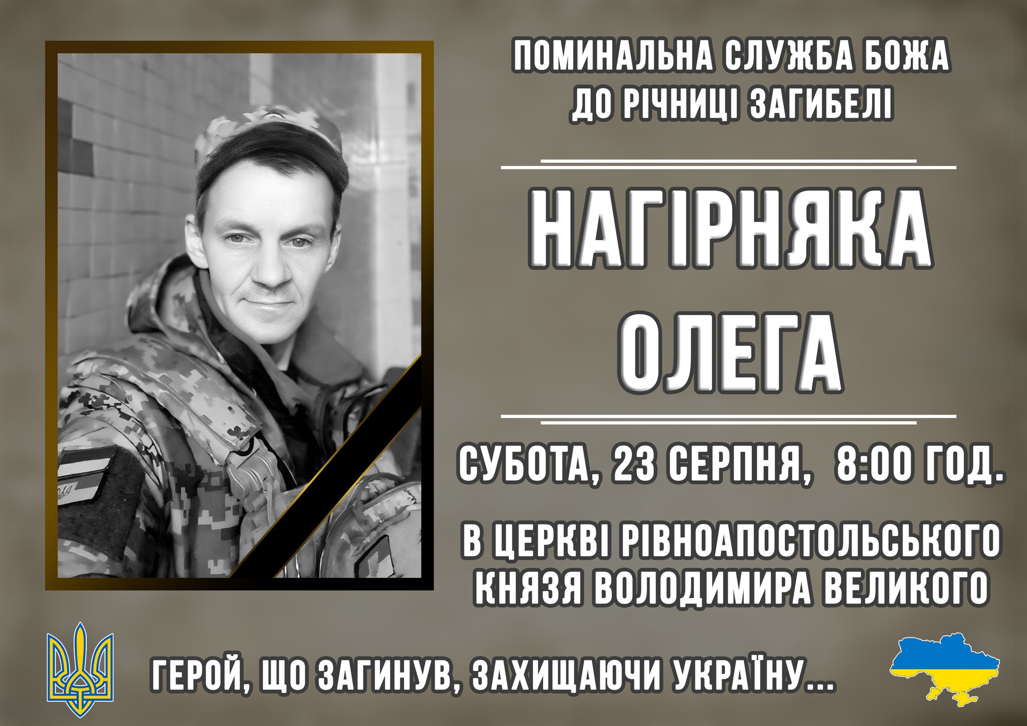 ЗАПРОШУЄМО ДО СПІЛЬНОЇ МОЛИТВИ ЗА УПОКІЙ ДУШІ ГЕРОЯ НАГІРНЯКА ОЛЕГА