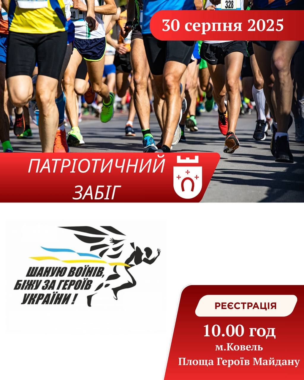 Запрошуємо всіх небайдужих долучитися до щорічного патріотичного забігу «Шаную воїнів, біжу за Героїв України». Ця подія — це не просто спортивне змагання, це глибокий вияв нашої спільної вдячності та шани тим, хто щодня стоїть на захисті нашої суверенності, і тим, хто, на жаль, віддав за нашу свободу найдорожче – своє життя. Подія має на меті об’єднати громаду навколо вшанування пам’яті полеглих воїнів та підтримки тих, хто продовжує боротьбу. Ми запрошуємо вас прийти всією родиною, взяти з собою друзів та колег, щоб спільно продемонструвати: ми пам’ятаємо, ми шануємо, і ми пишаємося подвигом наших Героїв. Це чудова нагода для кожного з нас вшанувати пам’ять тих, хто загинув, захищаючи Україну, та висловити підтримку тим, хто й досі боронить нашу землю. Ваша участь – це ваш внесок у вшанування пам’яті та підтримку наших захисників. Приходьте, щоб показати свою єдність та солідарність. Особлива подія, яка об’єднує серця і душі в спільній меті – вшанувати пам’ять воїнів. До зустрічі на старті, щоб разом пробігти цю дистанцію пам’яті та вдячності!