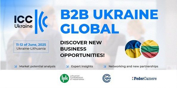Запрошуємо представників бізнесу взяти участь в онлайн B2B – Форумі «Ukraine Global: Литва – Україна», який відбудеться 11-12 червня 2025 року. Цей захід організовано ICC Ukraine для посилення двосторонньої економічної співпраці, налагодження прямих контактів між українськими та литовськими компаніями, а також обговорення нових можливостей партнерства. B2B форум – це чудова нагода розширити горизонти вашого бізнесу.