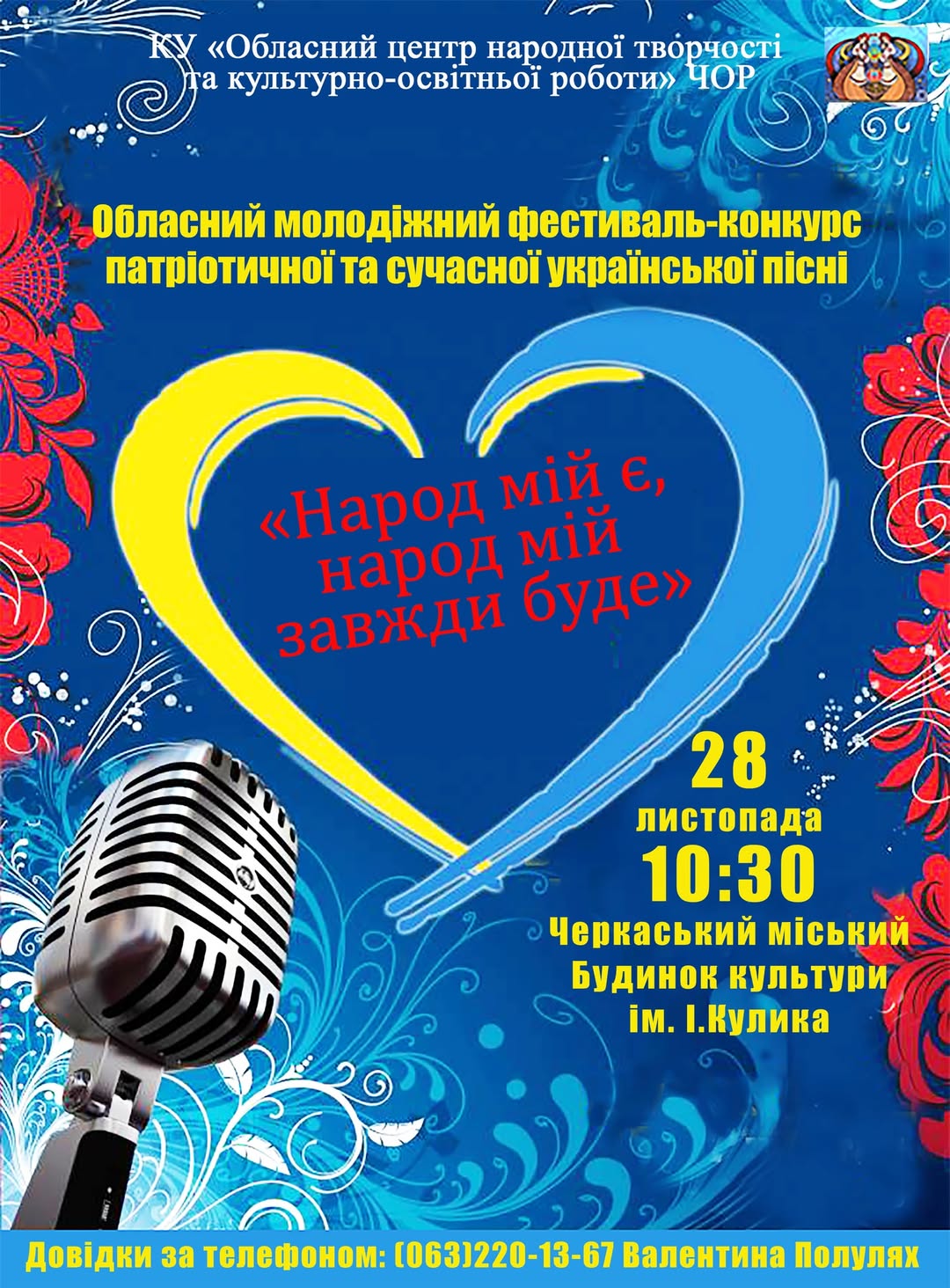 🎤 Запрошуємо талановиту молодь Черкащини до участі в обласному молодіжному фестивалі-конкурсі патріотичної та сучасної української пісні «Народ мій є, народ мій завжди буде»! 🇺🇦