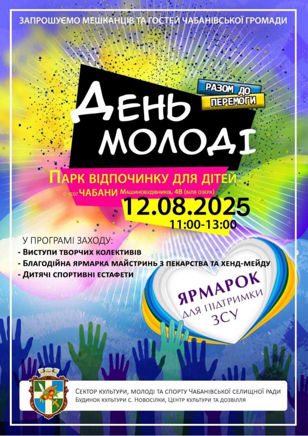 🎊 Запрошуємо всіх жителів та гостей Чабанівської громади відзначити День Молоді разом з нами! Ми організовуємо благодійну ярмарку на підтримку Збройних Сил України, долучайтеся!