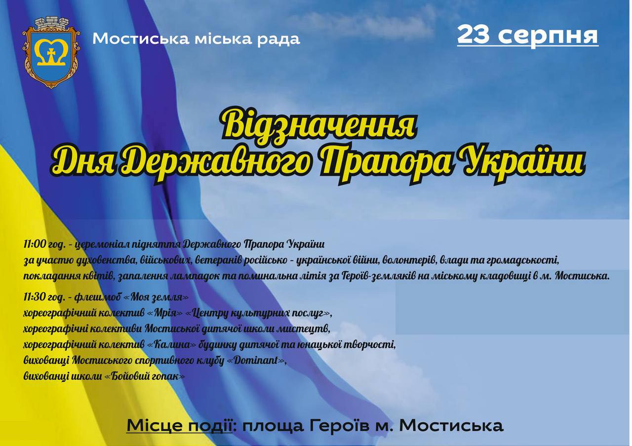 Запрошуємо всіх мешканців та гостей нашої громади долучитися до урочистих заходів, присвячених Дню Державного Прапора України та 34-й річниці Незалежності України. Це особлива нагода для кожного з нас вшанувати наші національні символи – синьо-жовтий прапор, що є втіленням боротьби за свободу та незалежність, та гімн, що єднає нас у спільній мрії про майбутнє.