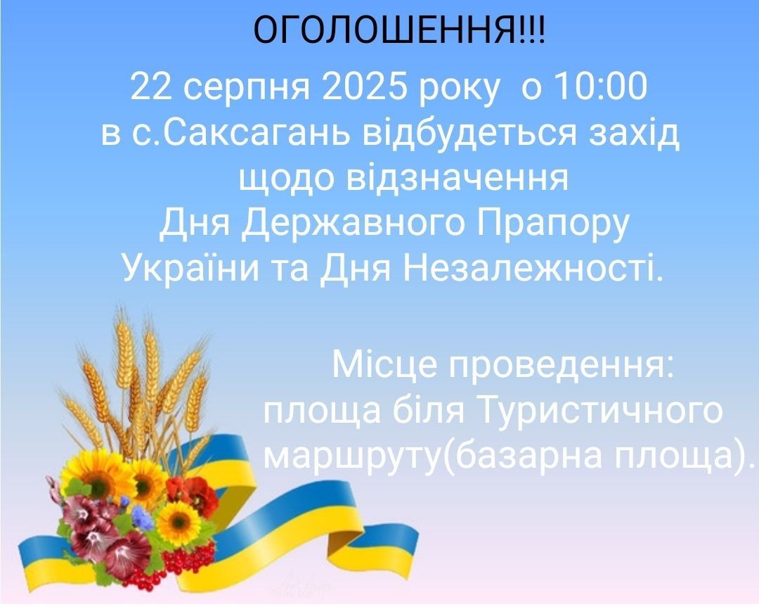 З нагоди одного з найважливіших національних свят, Дня Незалежності України, запрошуємо всіх мешканців громади та гостей на урочистий захід. Ця подія – символ нашої єдності, свободи та незламного духу. Ми вшануємо пам’ять тих, хто поклав своє життя за незалежність нашої держави, а також відзначимо здобутки і прагнення до вільного майбутнього.