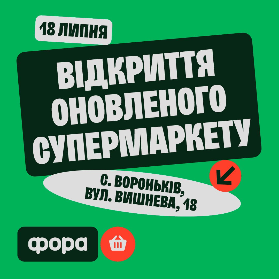 Запрошуємо на відкриття оновленого супермаркету «ФОРА» в c. Вороньків !