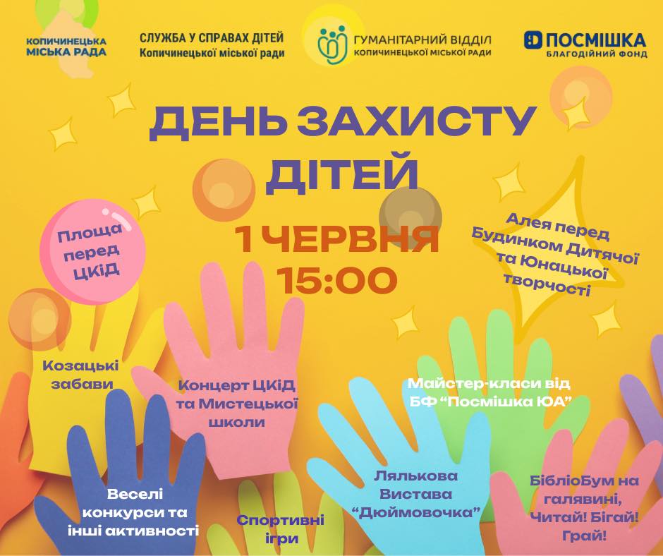 💫 1 червня о 15:00 чекаємо на вас у Копичинцях на святі День захисту дітей, яке буде сповнене ігор, розваг та подарунків! Це чудова можливість відзначити День захисту дітей разом з усією громадою.